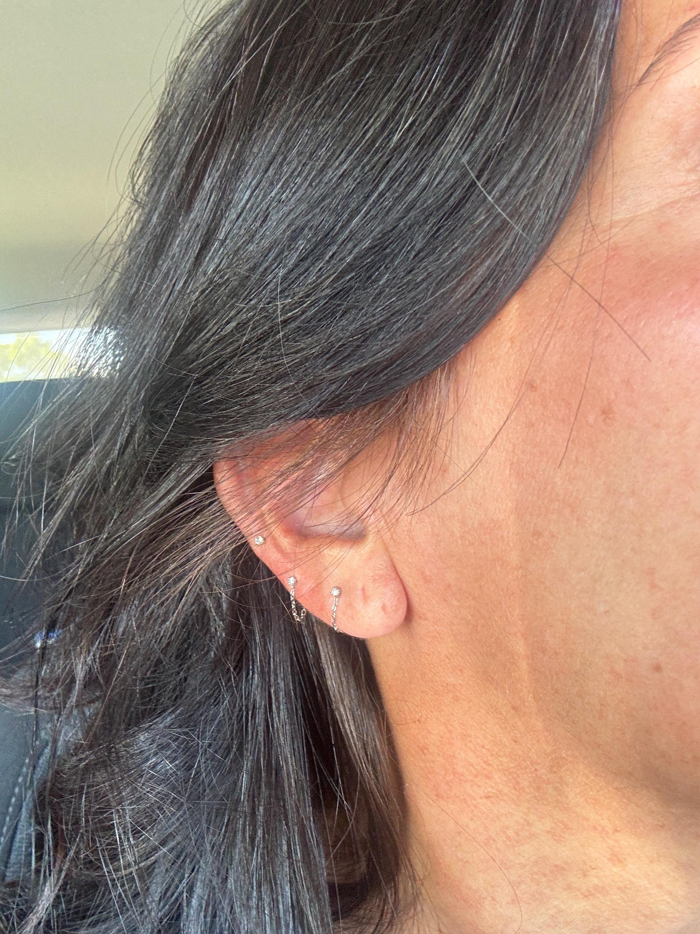Tiny 2mm Dot/CZ with Chain Hoop Earrings